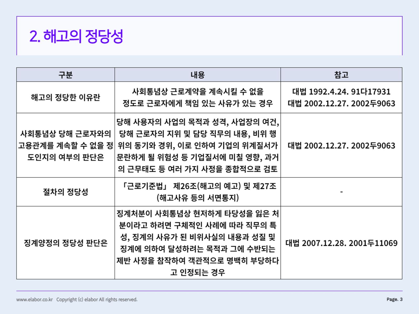 해고의 종류에는 근로자 사유로 인한 개인해고와 경영상의 사유로 인한 해고가 있으며, 제청사직은 회사가 제반 사정(경영상의 사유, 직원의 사유)으로 더 이상 노사관계에 어려움이 없을 때 근로자에게 사직을 권고하는 것을 말합니다. . “라고 근로자가 “수락”하면 근로계약은 해지된다. 근로자가 사직을 거부하더라도 근로계약은 여전히 유효하므로 근로자는 근로계약 해지 여부를 결정할 권리가 있다. 해고 통보는 반드시 최소 30일 전에 발급 30일 이상에 해당하는 통상임금 지급 근로기준법상 해고예고는 근로보수에 해당하지 않으므로 ‘급여’로 보지 않으며, 세무처리도 퇴직소득에 해당 , 퇴직소득세 공제 후 지급 개편된 기업 경영위험을 극복하기 위한 조치로 해고된 근로자가 해당 직무에 적합한 경우에도 과실이 없으며 회사가 어려운 사정으로 근로자를 해고해야 하는 경우 미국과 달리 한국은 고용의 유연성이 낮아 정규직 해고가 어렵다.