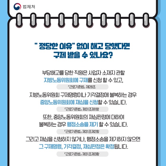 근로자는 부당해고일로부터 3개월 이내에 노동위원회에 부당해고 구제를 신청할 수 있습니다. 참고: 해고 통보를 받았을 때 사직서를 제출해야 하는 경우 사직서를 제출하지 말고 사직서를 제출해야 하며, 관할 노동위원회에 신청하여 우편으로 집앞으로 보내면 됩니다. 실업급여를 받을 수 있으며, 이 기간 동안 급여를 받을 수 있으며, 급여가 체납된 경우 실업급여를 반납해야 합니다. 귀하가 받은 실업 수당(환급되지 않은 경우 부정하게 받은 것으로 간주됨) 사업주의 관점에서 귀하가 해야 할 일. 미기재 시 500만원 이하 과태료 부과 – 1차 30만원, 2차, 3차 가산, 과태료 아님) – 신고 전 반드시 작성 고용일 근무 시작 2. 필수 월 급여 명세서를 발행합니다.해고는 서면으로 통보해야 합니다.