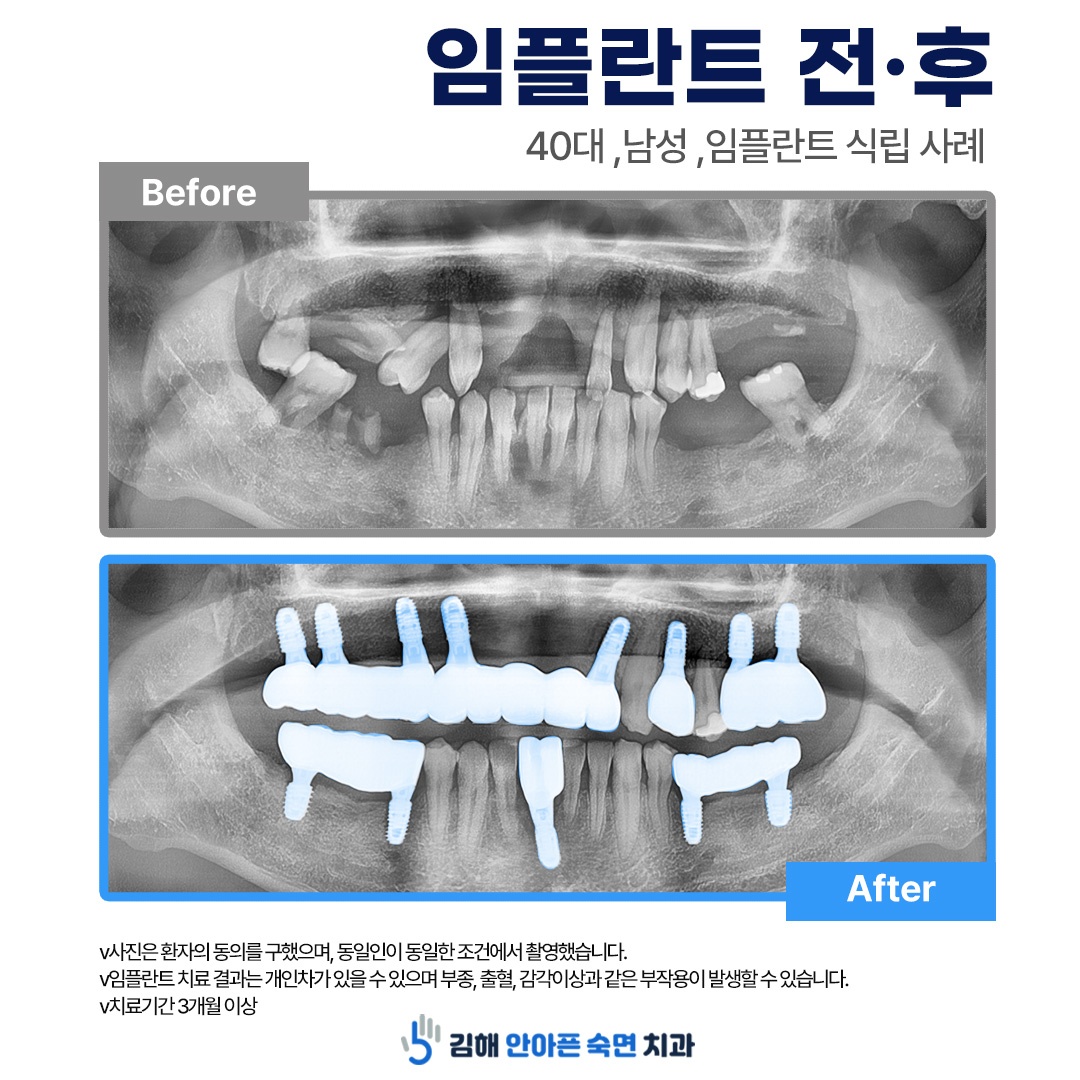*해당 의료기관에서 진료를 받은 동일인의 전후 사진은 동일한 조건으로 촬영되었습니다. 이해를 돕기 위해 진료를 받은 분의 동의를 받은 후 사용한 사례입니다. 치료 결과는 개인에 따라 붓기, 출혈, 통증 등이 나타날 수 있습니다. 담당 의사와 충분히 상담하시기 바랍니다. 결정을 내리기 전에 논의해 보십시오.