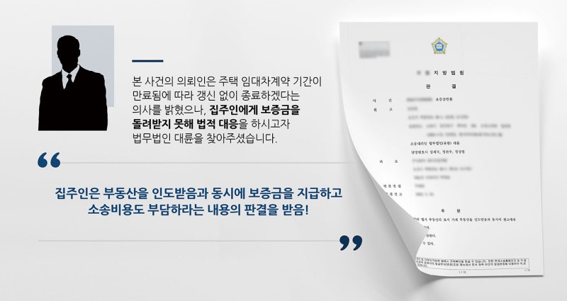 Q. 보증금 반환을 청구하는 데 얼마나 걸리나요? 보증금 반환 청구를 접수하는 데는 약 4~6개월 정도 소요됩니다. 이후 강제집행 신청부터 경매 개시까지 수개월이 소요될 수 있으며, 낙찰 후 배당을 받기까지 약 4개월이 소요된다. 최대 10개월이 걸릴 수 있습니다. 결국 소송부터 경매까지 가려면 1년 이상 걸릴 수도 있다. 또한 이는 평균적인 기간이며, 집주인의 사정이나 경매가 계속 실패할 경우 기간이 늘어날 수 있습니다. (이 때문에 시간의 기회비용을 최소화하기 위해 신속하게 법적 조치를 진행하셔야 합니다.) Q. 보증금은 소송을 통해서만 받을 수 있나요? 아니요, 소송을 통해 보증금 외에 집주인에게 많은 물건을 청구할 수 있습니다. 특히, 임대등록명령을 받은 후 집을 나간 경우에는 연 12%의 지연손해배상을 청구할 수 있다. 또한 변호사 비용을 포함한 법적 비용도 집주인에게 청구될 수 있습니다. 이렇게 보증금+연체이자+법무비용을 모두 청구하게 됩니다.Q. 보증금 반환에 필요한 법적 비용은 얼마인가요? 인지대 : 보증금 2억원 기준 약 76만원(법원에 납부하는 비용) 배달비 : 채권자(집주인) 1인당 약 8만원(법원에 납부하는 비용) 경매 보증금 : 약 230만원(법원에 납부하는 비용) 법원에 납부, 낙찰되면 전액 환불) 변호사 비용 : 440만원을 받고 있습니다. 여기서 권리관계가 그다지 복잡하지 않은 경우에는 추가비용 없이 경매와 집행이 원스톱으로 진행됩니다. (내용증명, 소송에서 승소 후 집행까지 전 과정을 실질적으로 지원해드립니다.) ▼ 자세한 절차와 비용, 임대보증금반환소송 비용이 궁금하신 경우 임대차계약이 만료된 경우에는 보증금을 돌려받아야 합니다. 하지만 집주인이 이를 거부하면 결국 합법화 되는데… blog.naver.com 보증금 돌려받기 위한 Key Q. 소송을 하면 임대주택 경매에 가야 하나요? 답: 아니요! 정반대. 보증금 반환을 청구하는 소송의 주된 목적은 보증금을 돌려받는 것입니다. 실제로 배당금이 지급된다면 지나치게 긴 기간에 따른 기회비용이 상당할 수 있다. 따라서 집주인에게 민원을 제기하거나 내용을 입증하여 자발적으로 보증금을 반환하도록 압력을 가하고 있습니다. 유도하는 것이 바람직합니다. 즉, 소송 과정에서도 협상과 압력을 병행해 집주인과 협상하는 것이 효과적이다. ▼ 참고하면 좋은 글 : 집주인 압박 스킬, 보증금을 주저 없이 돌려주도록 독려. 최근 보증금 반환 문제로 어려움을 겪는 임차인이 늘고 있습니다. 큰 사회문제로 대두되고 있는데… blog.naver.com 제 경험에 따르면, 소송이 진행되고 있음에도 보증금을 돌려주지 않는 집주인의 경우 집을 포기하고 집을 포기하는 경우가 많습니다. 개인파산이나 재산횡령 등을 통해 종합부동산세 및 채무예치 등을 해결하려고 합니다. .이러한 상황에서는 승소판결이 나오는 대로 신용조사 및 재산신고 신청을 통해 집주인의 재산상황을 파악하게 됩니다. 이를 통해 임대주택 외에 다른 자산이 있는지 확인하는 것이 중요하다. 가능하다면 집주인의 은행계좌를 압류하거나 실제 살고 있는 자동차나 집을 압류하세요. 유리한 판결이 나온 후 6개월이 지나면 채무 불이행자로 등록되어 집주인의 신용 거래가 어려워질 수 있습니다. 이런 압박을 통해 임대주택이 경매되기 전까지 보증금을 최대한 회수하겠다는 목표다. 이후 최후의 수단으로 임대주택을 경매에 부친다. 최대한 보증금 회수를 진행하셔야 합니다. 임대 주택을 경매하기 전에 임대인의 다른 부동산에서 최대한 많은 것을 확보해야 합니다. 지난 3년 동안 우리는 임대 보증금 반환을 위해 수백 건의 소송을 처리했습니다. 다양한 유형의 임대인을 상대하며 풍부한 노하우를 축적해왔습니다. 여기서 그 노하우를 모두 공개하기는 어렵지만, 개별적인 분석은 가능합니다. 상담을 원하시면 (임대차계약서), (등기부등본)과 간략한 현황을 이메일로 보내주세요. 명확하게 적어서 보내주세요. *전화상담도 바로 가능합니다. 이 번호는 제 직통번호입니다. 전화나 온라인 상담에는 비용이 들지 않습니다. 찾아오시는 길 저희 법무법인은 서울, 부산, 대구, 창원에 지점을 두고 있습니다. 기본적으로 소송에 들어가기 전에 저는 개인적으로… blog.naver.com