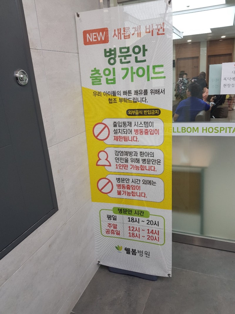 등록한 지 30분도 채 되지 않아 총 45명이 대기하고 있었습니다. 지난번에는 병아리방에서 진료를 보았는데, 병원을 방문한 날은 문이 닫혀 있어서 이번에는 공룡방으로 갔습니다. (병아리방과 공룡방 모두 선생님들도 천사같고 친절하시고 아기들에게도 다정하게 대해주셔서 행복해하는 모습이 보이네요) 아무튼 1차 치료, 2차 검사(바이러스 원인을 찾기 위한 혈액검사, 이후 청취 순서대로 입원 결정 아기 증상 : 고열 + 콧물 + 가래 + 금식 + 분유 마시기 검사 결과 : 독감 + 코로나바이러스