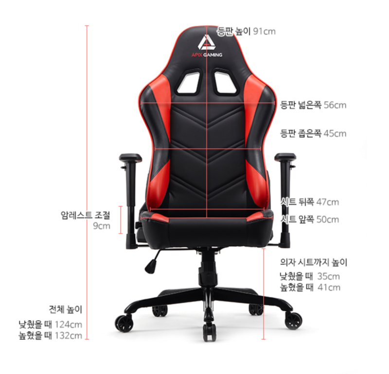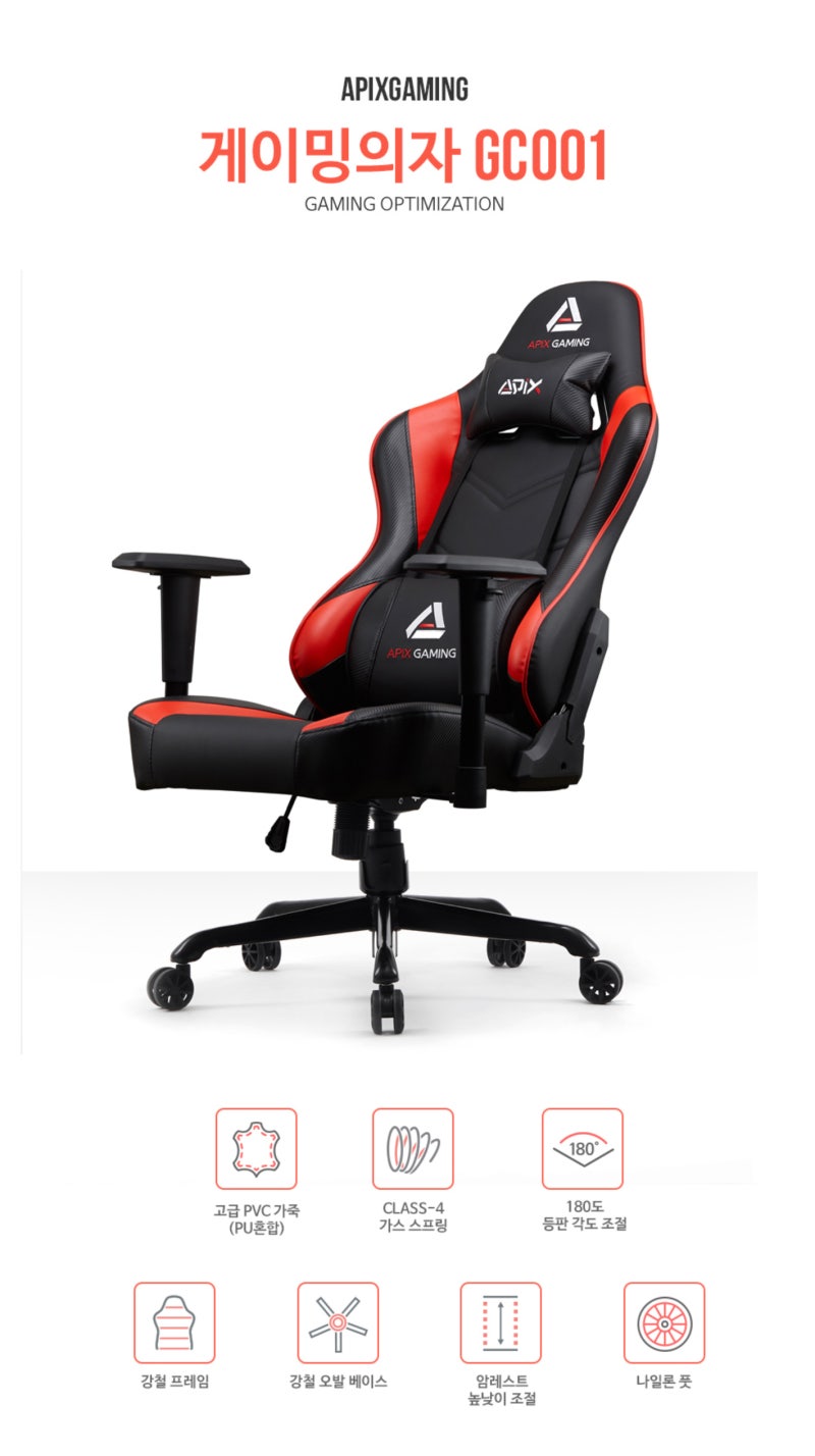 일단 디자인을 보면 고급스럽습니다. 회장의 의자를 연상시키는 고급스러운 디자인을 가지고 있습니다. 색상은 블랙, 그레이 2가지 색상 중 선택하실 수 있으며, 가스스프링은 키에 맞춰 S, L 사이즈로 선택하실 수 있습니다. Apix PC001 모델은 별도의 조립이 필요없이 바로 사용이 가능하다는 장점이 있습니다.