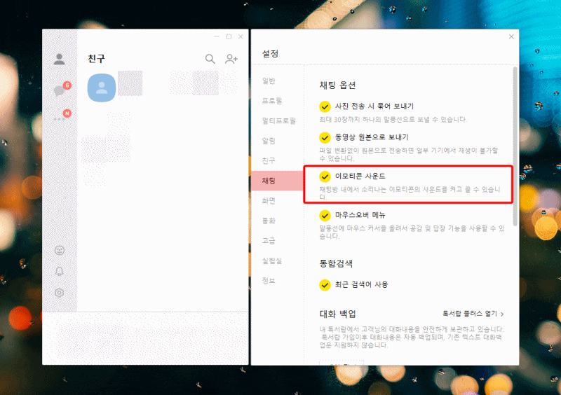 카카오톡 이모티콘 소리를 끄기 위한 모바일 PC 설정 방법